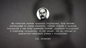 1929 года. Называется «Двенадцать лет строительства советского государства и борьба с оппортунизмом». В этом докладе Каганович не воспевает правовой беспредел, как это представляется в данной агитке, а говорит о несостоятельности самой концепции «правового государства».