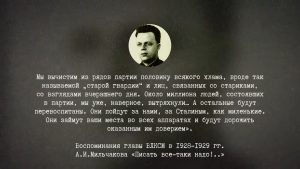 Просто вдумайтесь. Сталинское руководство уничтожало старую большевистскую гвардию, оппозиционеров и даже бывших оппозиционеров просто превентивно, просто из принципа «как бы чего не вышло.