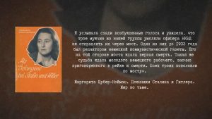 Рудой, как и прежде, давит на эмоции, подбирая удобные для себя цитаты. Приводит цитату Маргариты Бубер-Нойманн, ранее состоявшей в КПГ и являвшейся супругой Хайнца Нойманна – довольно заметного деятеля КПГ, репрессированного в 1937 году в СССР.