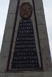 Смысл надписи потряс нас до глубины души. Люди погибли за то, чтобы владыкой мира стал труд! Соратники не забыли подвига и увековечили его в камне. Он простоял более ста лет, пережил Великую Отечественную войну и контрреволюцию 90х. Памятник возвышается затаившимся исполином коммунистической идеи среди рыночного моря аляповатых лавок, лавчонок, лавочек, магазинов, кафешек и забегаловок, заметно потускневших и ободранных с окончанием курортного сезона. Постояли мы с товарищем около него, почтили память удивительных людей, благодаря подвигу которых трудовой народ жил 70 лет достойно, не склоняя головы перед господами разной величины и пошиба. В преддверии 108 годовщины Великой Октябрьской социалистической революции памятник этот придал нам уверенности, что борьба за светлое будущее народа капиталу не проиграна, она только начата. Работы много, скучно не будет!