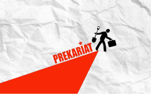 С точки зрения канадского политолога и экономиста Ника Срничка, начало неустойчивых трудовых отношений было положено кризисом фордистской модели и усугублено сначала крахом СССР, а впоследствии — кризисами конца 90-х – начала 00-х гг. Современные кризисы эту ситуацию продолжают усугублять. Прекарные отношения поражают огромные массы работников в трудовых и социально-экономических правах: праве на оплачиваемый отпуск, больничный, организацию профсоюза. Квинтэссенцией таких отношений становится стремительно распространяющийся в западных странах «нулевой контракт», согласно которому компания оплачивает только фактически отработанные часы, не давая никакой гарантии на занятость. С другой стороны, исследователи отмечают, что наёмный работник с непостоянной занятостью чаще свободен только формально, на деле же его период отдыха предстаёт как «навязанное принуждение… как время, подвешенное в ожидании телефонного звонка». По оценке Европейской конфедерации профсоюзов, число молодых работников работающих по нулевому контракту выросло с 2010 по 2016 год в 5 раз, почти до миллиона человек.